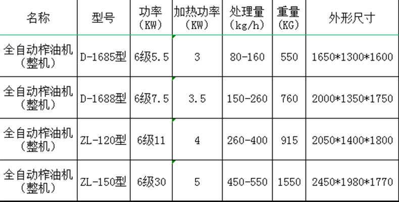 螺旋榨油機參數(shù)