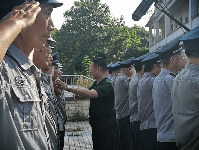 2019年8月11日,世平保安公司組織部分保安隊員分批進行例行的軍事訓(xùn)練,董事長方世平親自帶隊,并逐一指導(dǎo)規(guī)范動作,確保隊員以最佳狀態(tài)為服務(wù)單位提供高質(zhì)量的保安服務(wù)。
